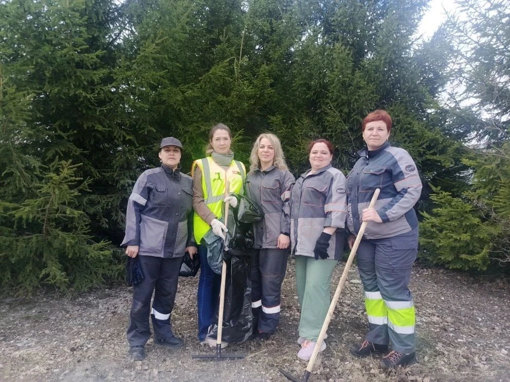 Работники железной дороги собрали мусор и сухую листву. Территория заметно преобразилась — стало чисто, уютно и опрятно.