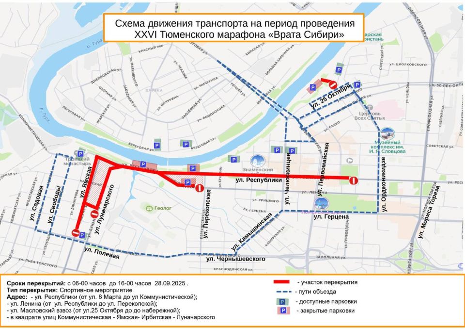 28 сентября в областной столице пройдет Тюменский марафон «Врата Сибири». В этот день с 6 утра и до 16 часов для движения транспорта закроют:ул. Республики – от ул. 8 Марта до ул. Коммунистическойул. Ленина – от ул. Республики до ул....