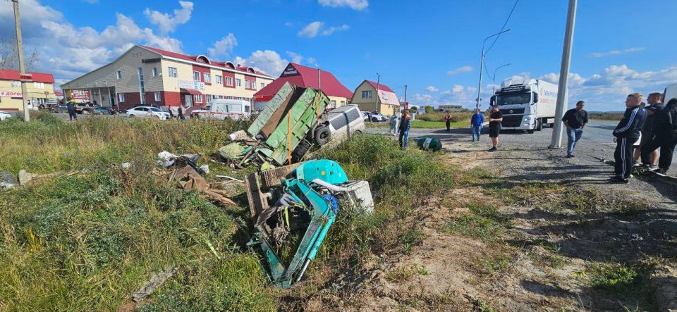 Участниками ДТП стали грузовик "Хино", буксировавший "Мазду Бонго" и перевозивший в кузове мини-экскаватор, и большегруз "Ситрак". Предварительно, 53-летний водитель "Хино" не выдержал безопасную дистанцию, от удара большегруз отбросило в кювет...