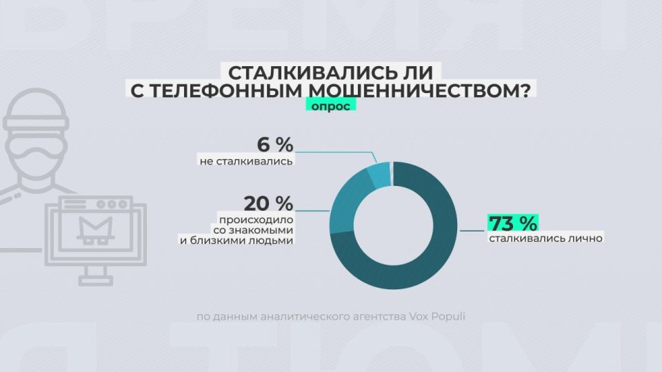 Об этом свидетельствуют данные всероссийского опроса.73% респондентов лично становились жертвами попыток телефонного обмана, а еще 20% сталкивались через знакомых или членов семьи. И только 6 % указали, что не имели подобного опыта.Почти...