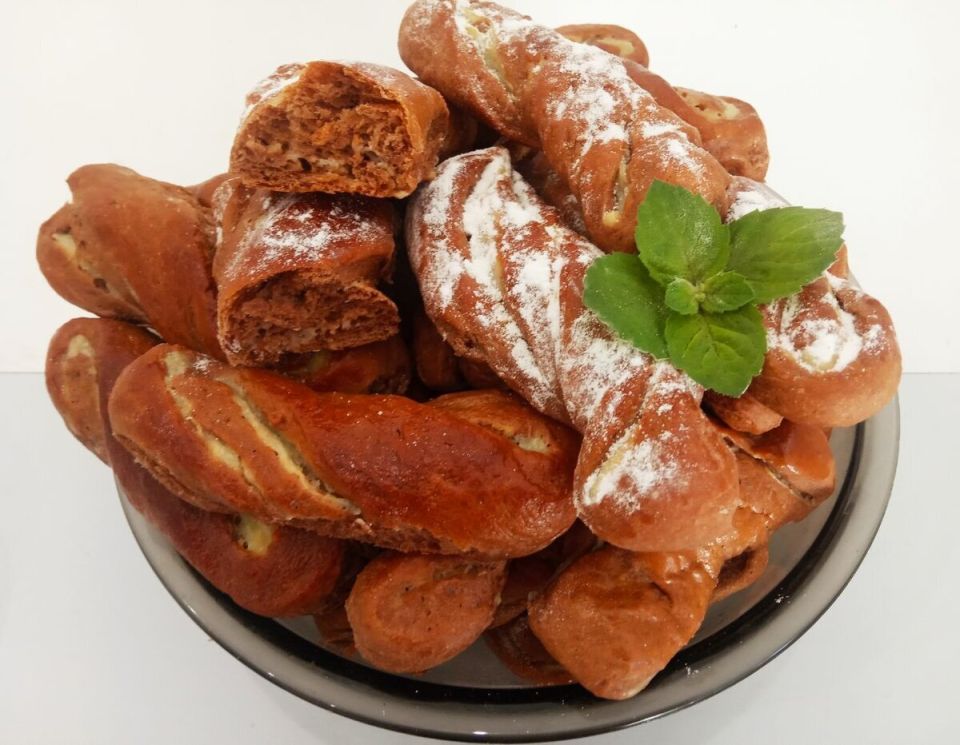 Когда тесто поднимется, его делят на части, каждая из которых раскатывается в пласт. Начинка из крема равномерно распределяется на тесте. После этого тесто сворачивается в рулеты, которые затем нарезаются на небольшие булочки. Их укладывают на противень и оставляют на расстойку, смазывая желтком с сметаной перед выпечкой.