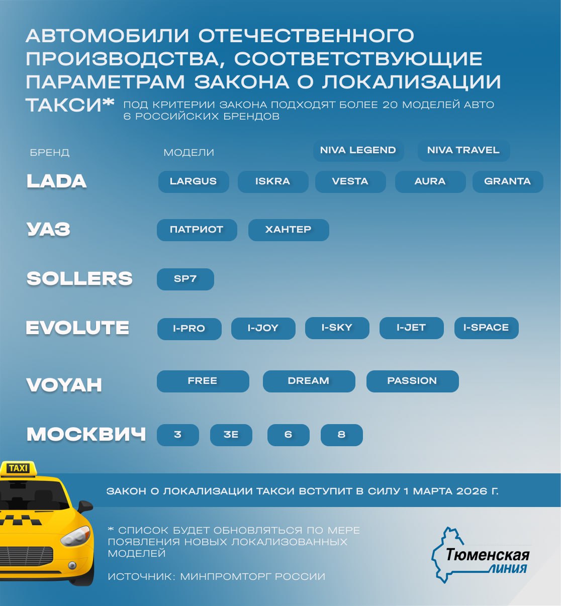 Минпромторг РФ опубликовал список автомобилей, которые соответствуют требованию закона о локализации такси. Ожидается, что список будет пополняться с появлением новых отечественных авто.