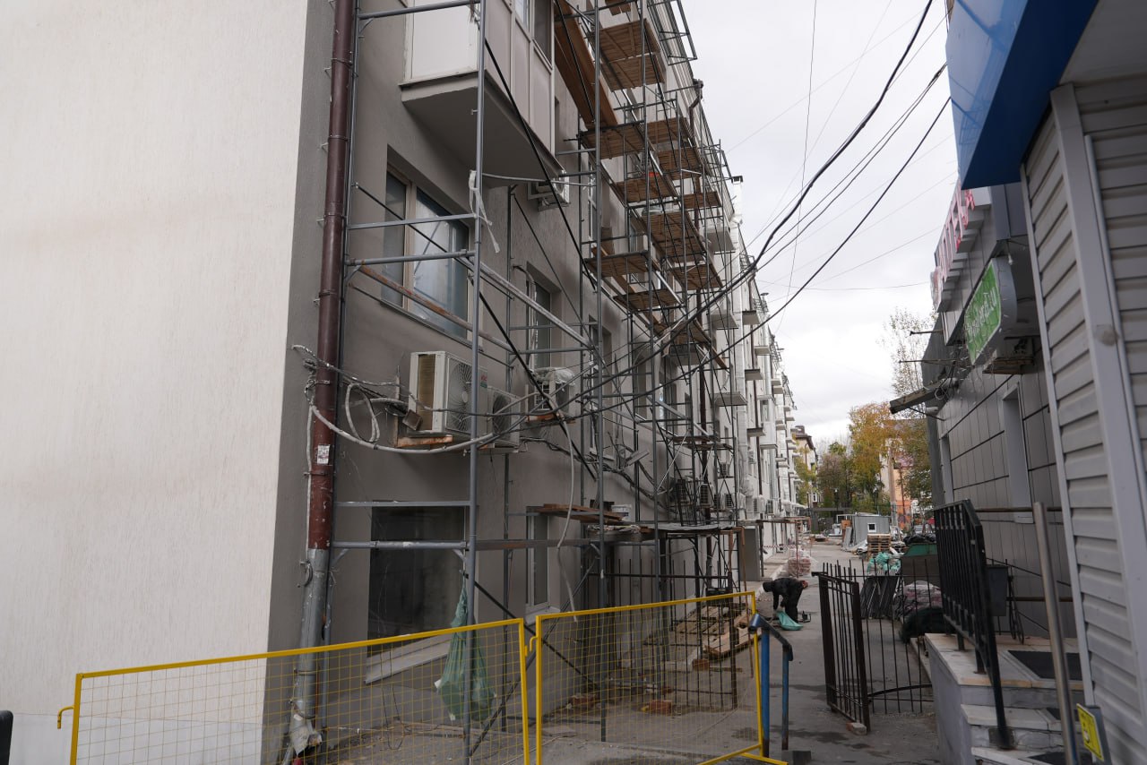 В ходе рабочего объезда был проверен ход капитального ремонта фасада многоквартирного дома на улице Дзержинского.