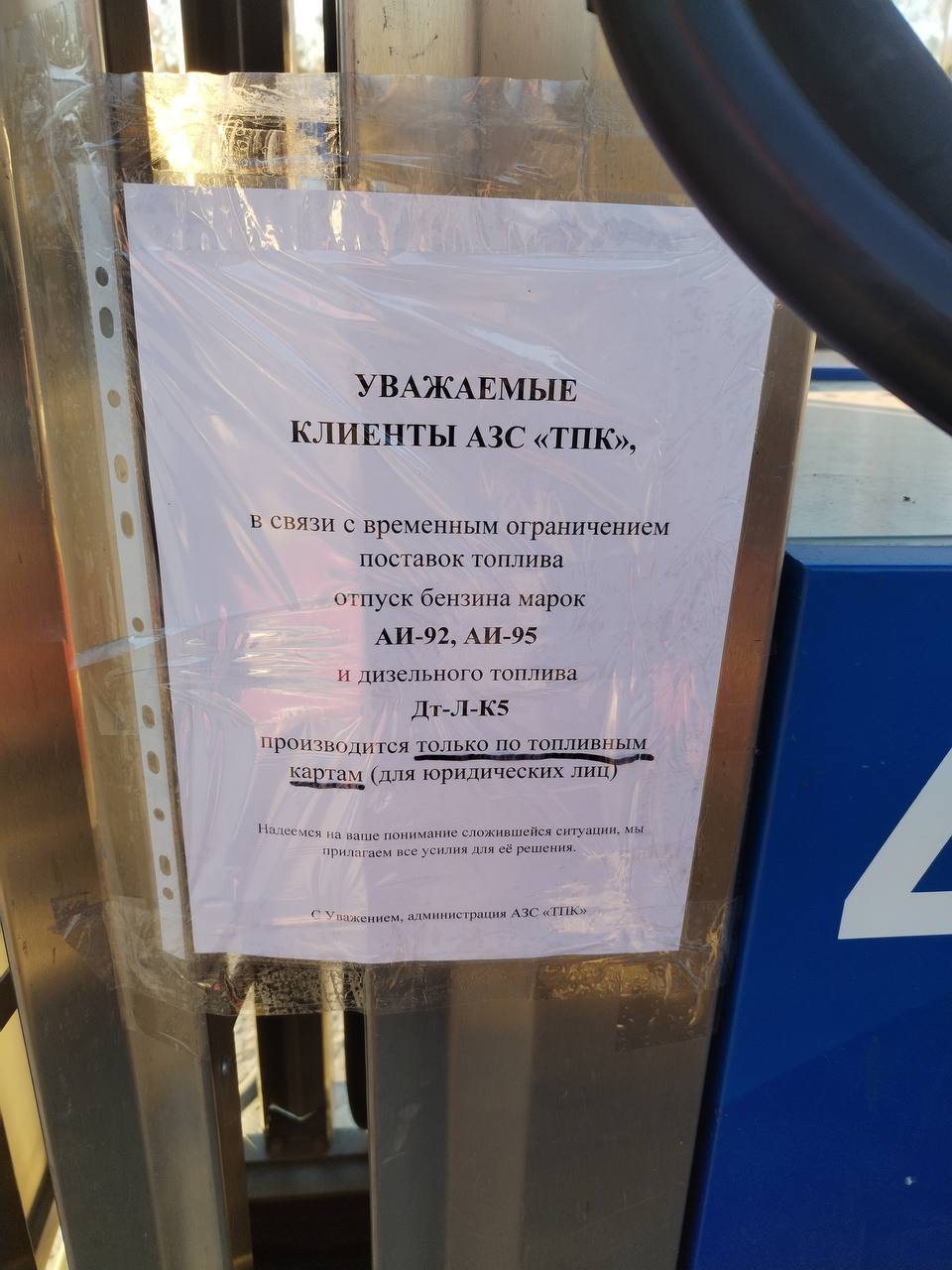 На заправках ТПК бензин АИ-95 отпускают только по топливным картам, расплатиться деньгами не удастся. Ограничения связаны с дефицитом топлива.