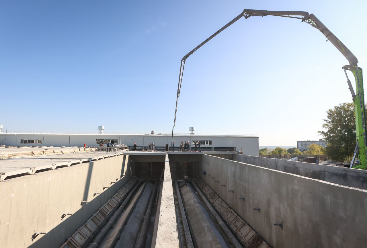 Сейчас строители заливают последний отстойник. Одновременно специалисты выполняют гидроизоляцию, монтируют технологическое оборудование и инженерные коммуникации в уже построенных отстойниках и блоке смесителей.