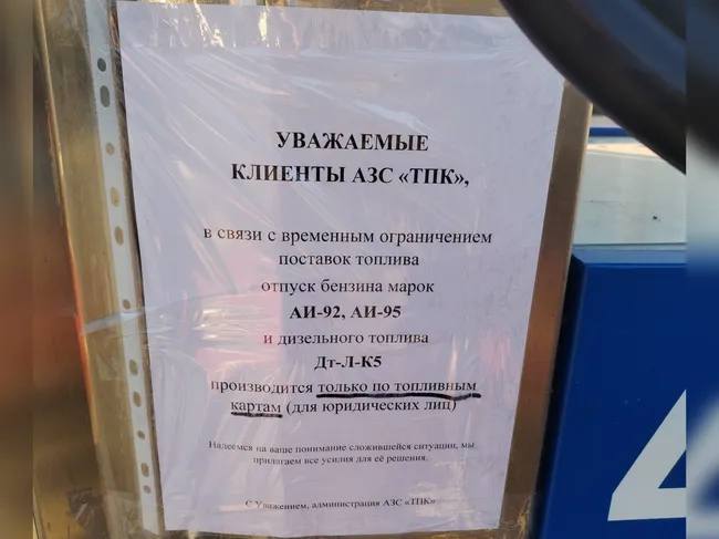 Первой тревогу подняли клиенты сети «ТПК». На этих заправках бензин сейчас отпускается исключительно по топливным картам – то есть фактически только юридическим лицам