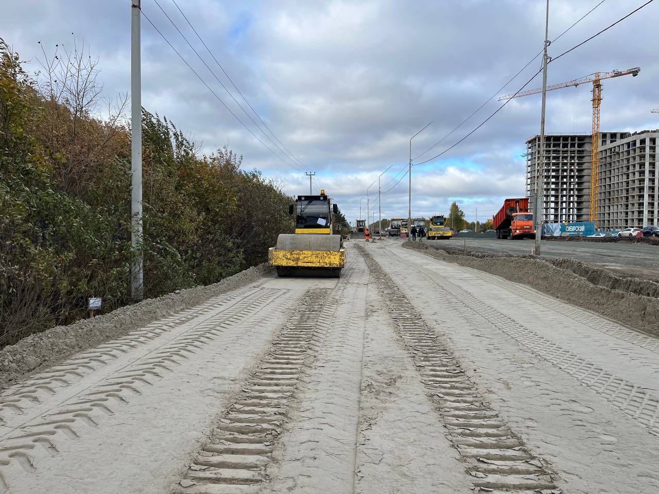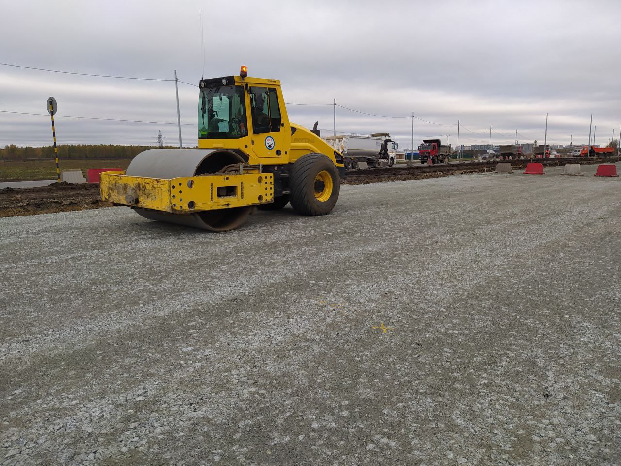 На оси №2 - из Екатеринбурга в Тюмень протяжённость 650 метров, завершены земляные работы, уложено песчаное основание, на 60 % выполнено устройство щебеночного основания.