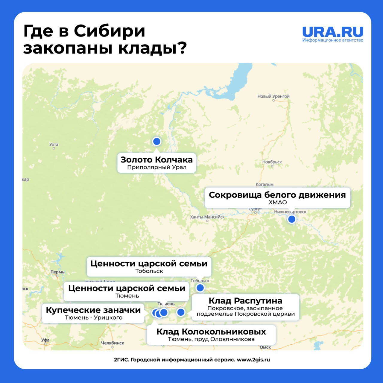«Золотой треугольник» Сибири: Тюмень, ХМАО и ЯНАО — места, где по легендам спрятаны золото, бриллианты, царские короны и сундук Распутина. Каждый год кладоискатели приезжают в эти регионы в надежде разбогатеть и прикоснуться к истории. Что таит в себе местная земля и где искать сокровища — в карточках и в материале URA.RU.