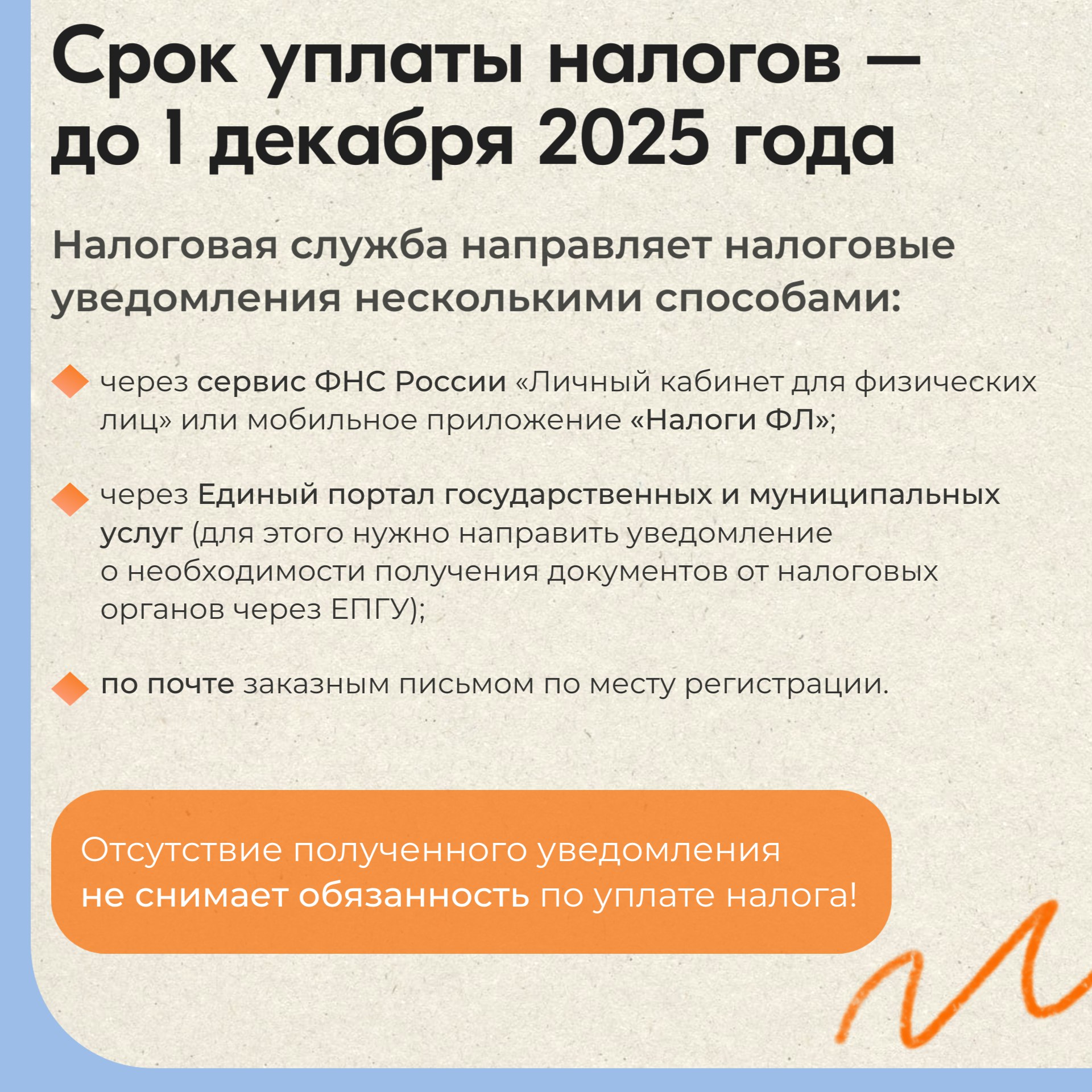 Федеральная налоговая служба уже начала рассылку уведомлений на уплату имущественных налогов (за жильё, транспорт, землю) и НДФЛ за 2024 год.