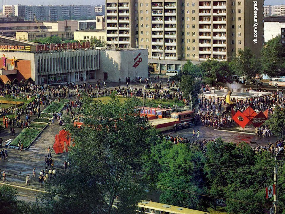 Раньше на месте площади у Драмтеатра находился частный сектор. Однако в конце 1970-х его снесли и построили кинотеатр Юбилейный, куда многие тюменцы ходили смотреть фильмы. Но его судьба оказалась незавидной.