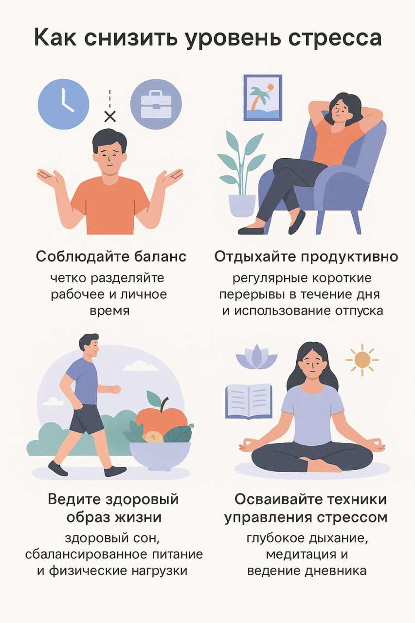 • Борьба со стигмой: говорите о психическом здоровье так же открыто, как и о физическом. Повышение грамотности в этом вопросе помогает создать поддерживающую атмосферу;