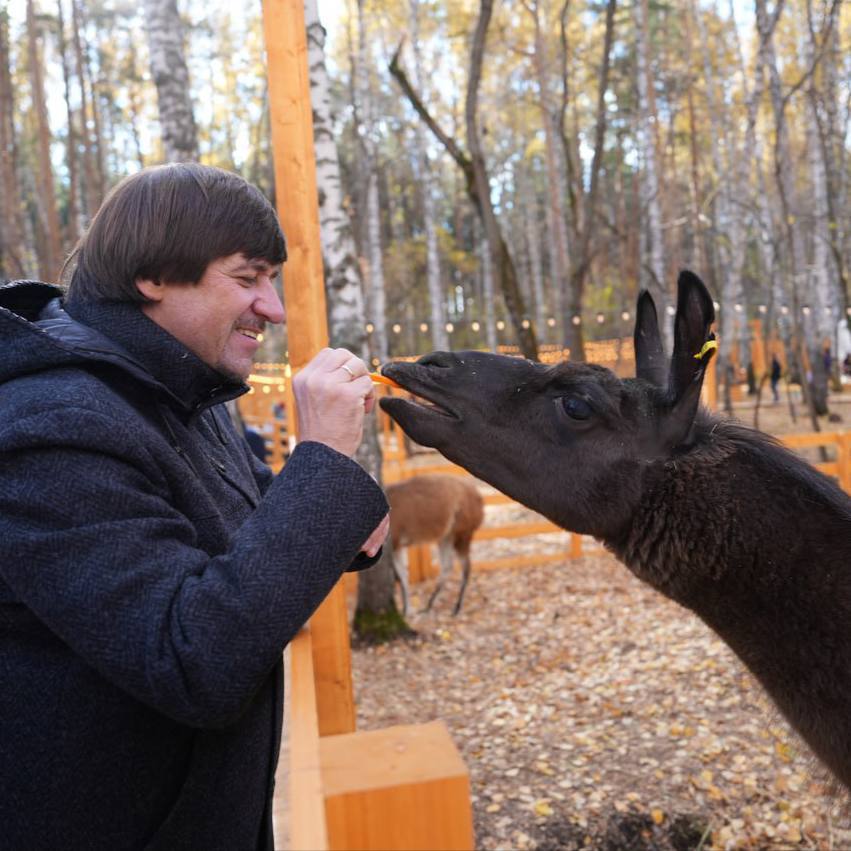 Милоты на вечер: тюменский мэр кормит альпаку Где? В экопарке Затюменском