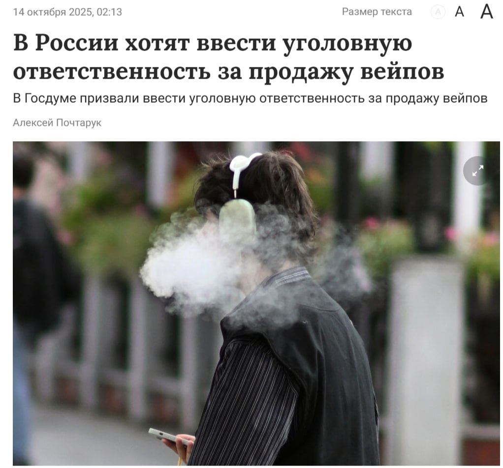 Депутаты фракции "Справедливая Россия" в Государственной думе Дмитрий Гусев и Елена Драпеко направили обращение к главе МВД Владимиру Колокольцеву с предложением установить уголовную ответственность за производство, распространение и использование электронных сигарет, аналогичное мерам, применяемым в отношении незаконного оборота наркотиков (с) РИА