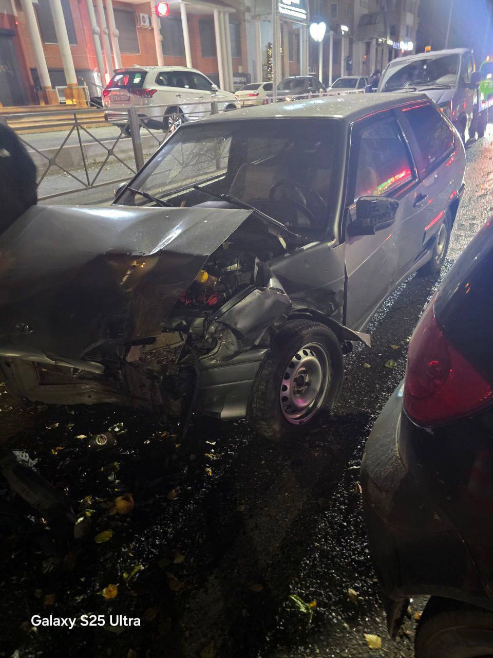 — Вчера вечером ДТП около Мельникайте, 55, ВАЗ 2113 столкнулся с иномаркой. Водитель и пассажиры тренашки отделались ушибами, а пассажирку иномарки госпитализировали с переломами, удар пришелся на её дверь.Так же задели газель, у нее только номер погнулся. Иномарка выполняла разворот и выехала на среднюю полосу не убедившись в отсутствии машин, стояла поперёк дороги.