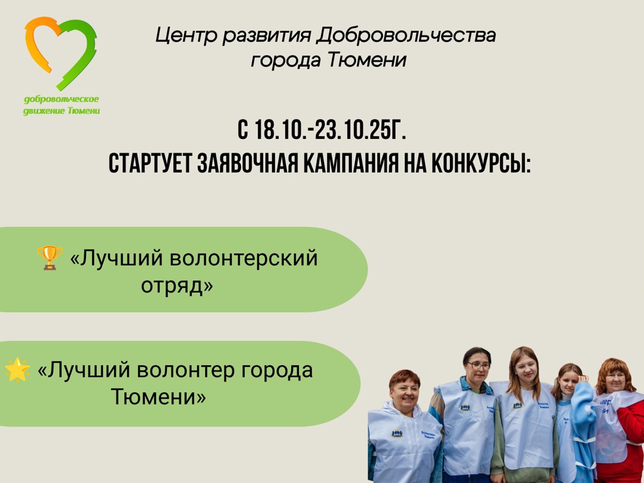 В ближайшее время в Тюмени стартует заявочная кампания на конкурсы «Лучший волонтер года» и «Лучший волонтерский отряд». Это отличная возможность для волонтеров и их команд проявить себя и получить заслуженные награды.