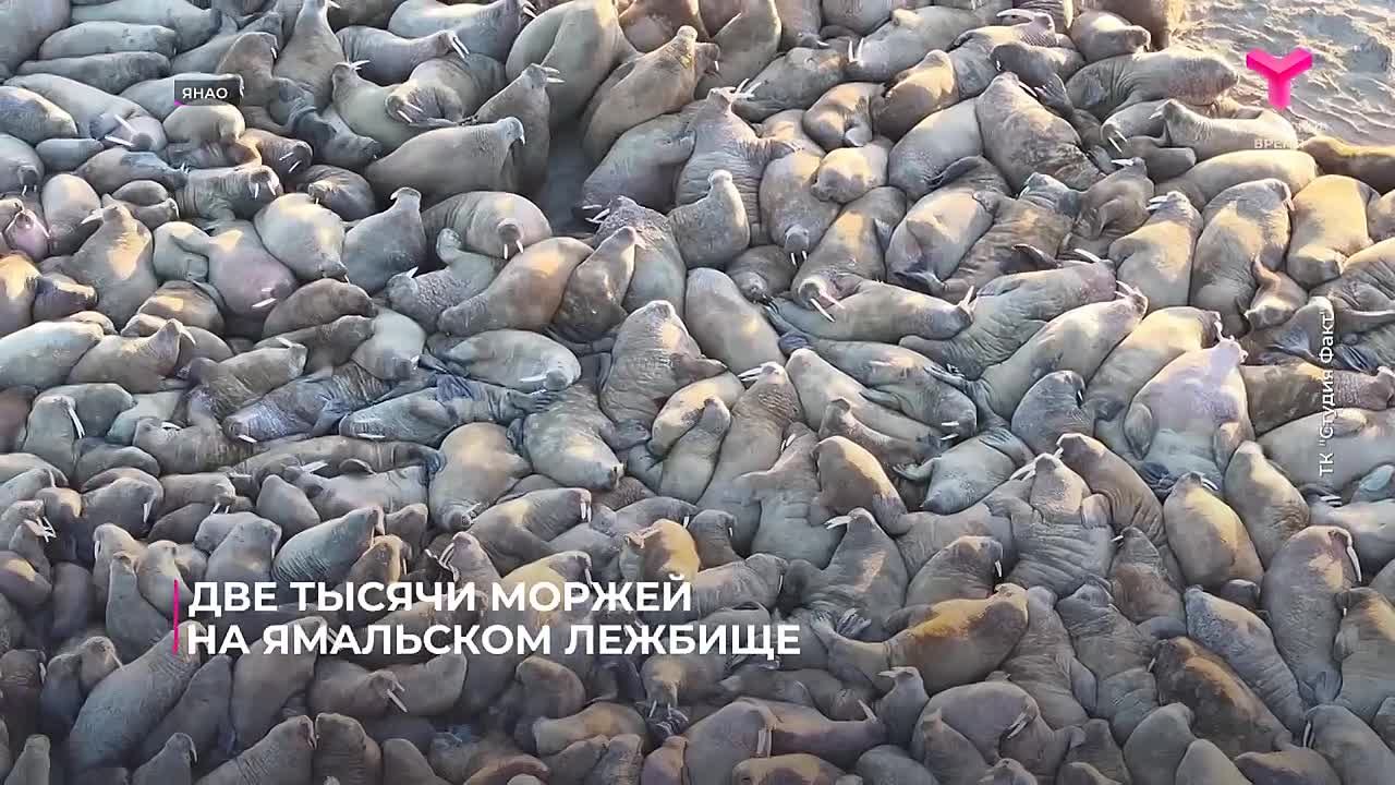 Две тысячи моржей одновременно вышли на берег на Ямале.