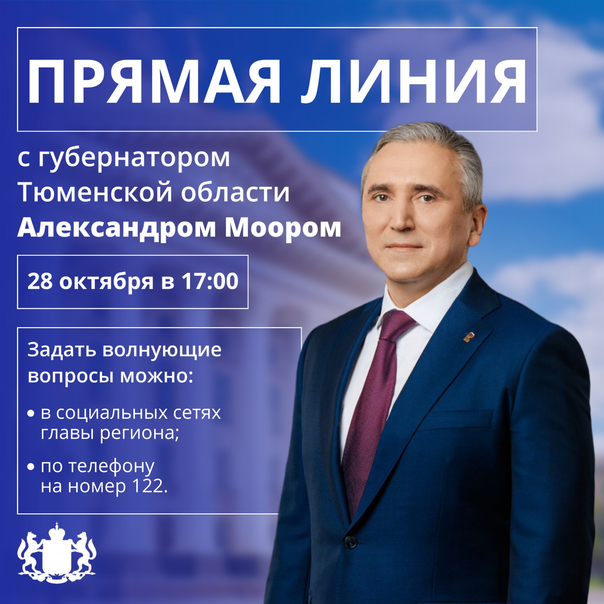 28 октября в 17:00 состоится прямая линия с губернатором Александром Моором. Это время для открытого диалога о том, что волнует каждого из нас.