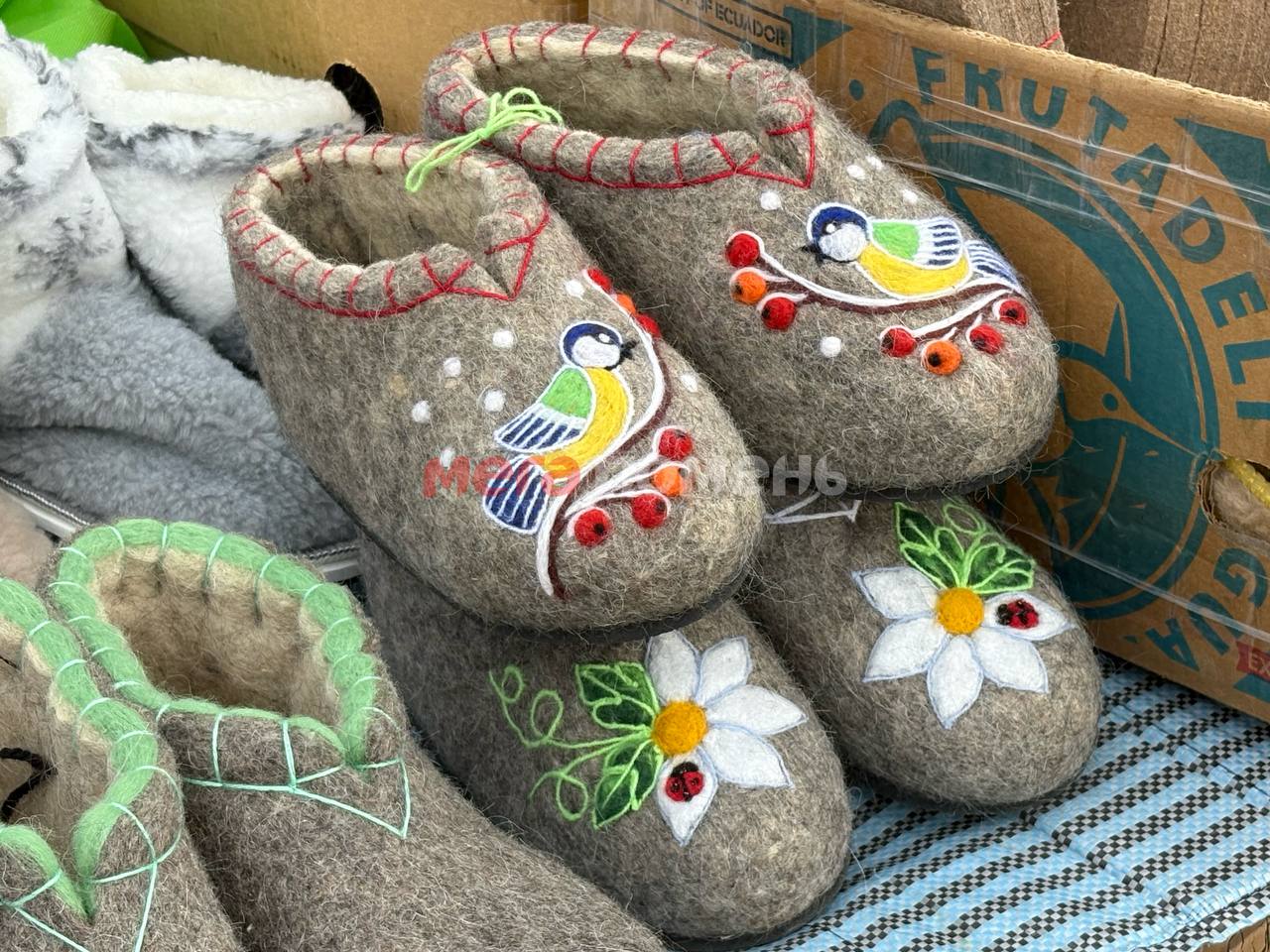 Среди продовольствия затесались и другие товары: браслеты, кулоны из стекла и камней, валенки, носочки и варежки из шерсти