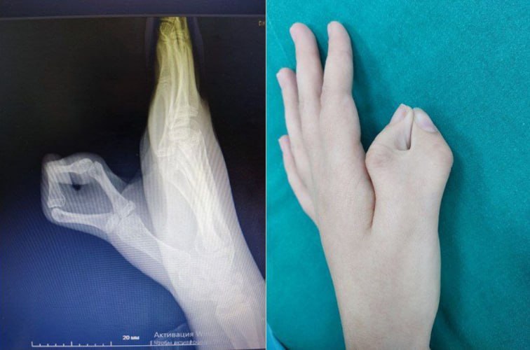Как объяснил кистевой хирург Игорь Супрунов, во время вмешательства медики не просто убрали добавочный палец, но и восстановили форму кисти, укрепив сустав спицей. Это позволит избежать повторной деформации пальца.