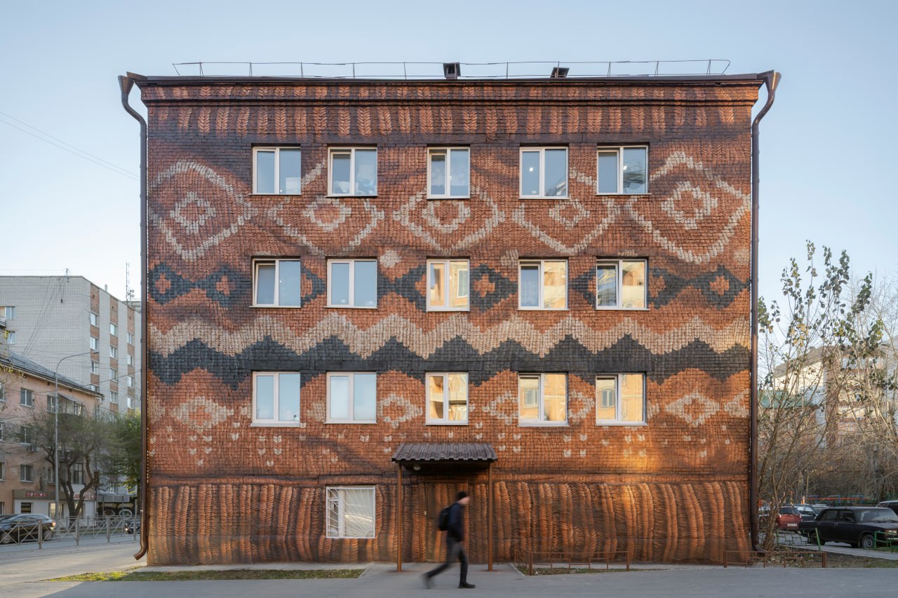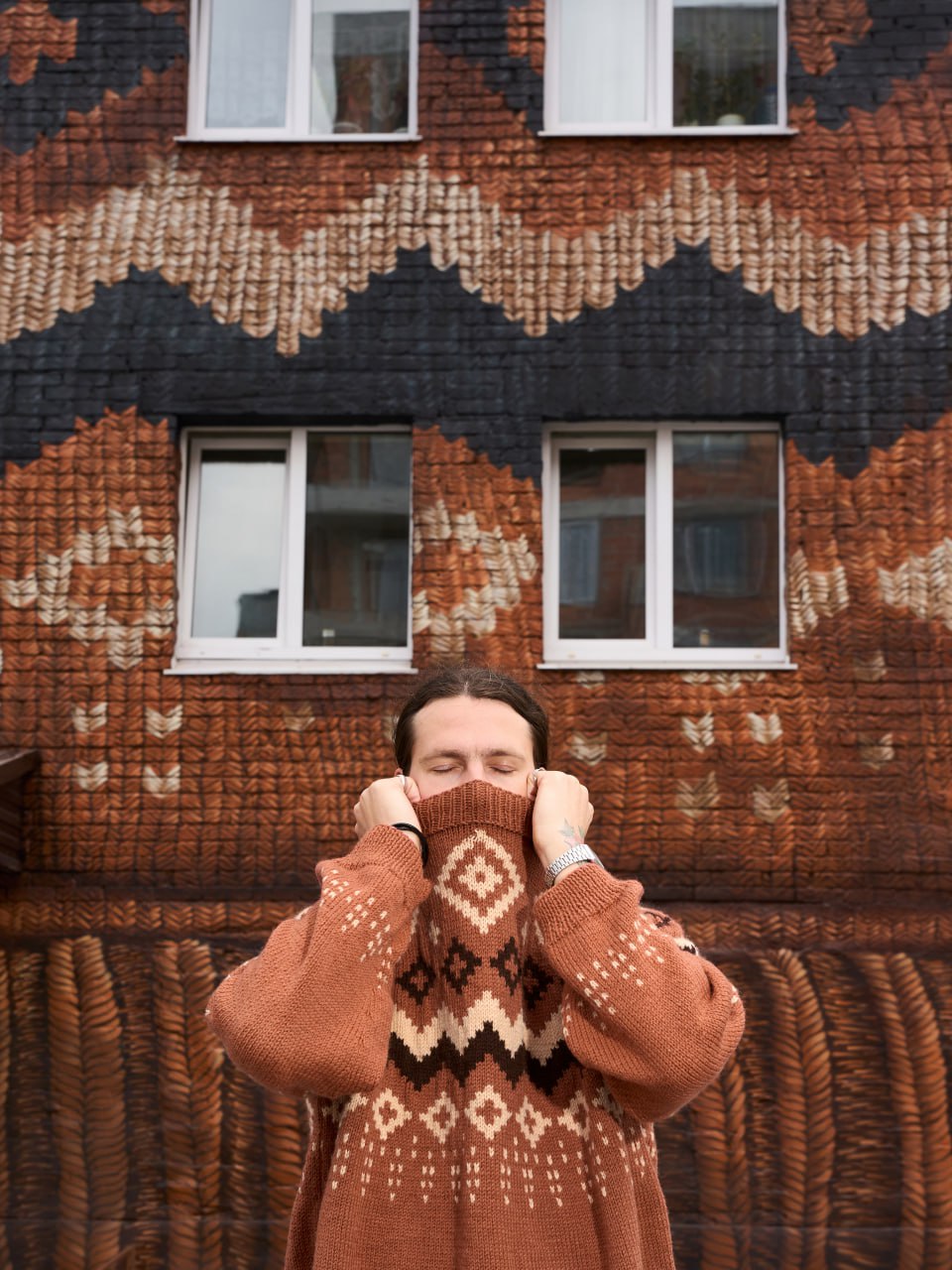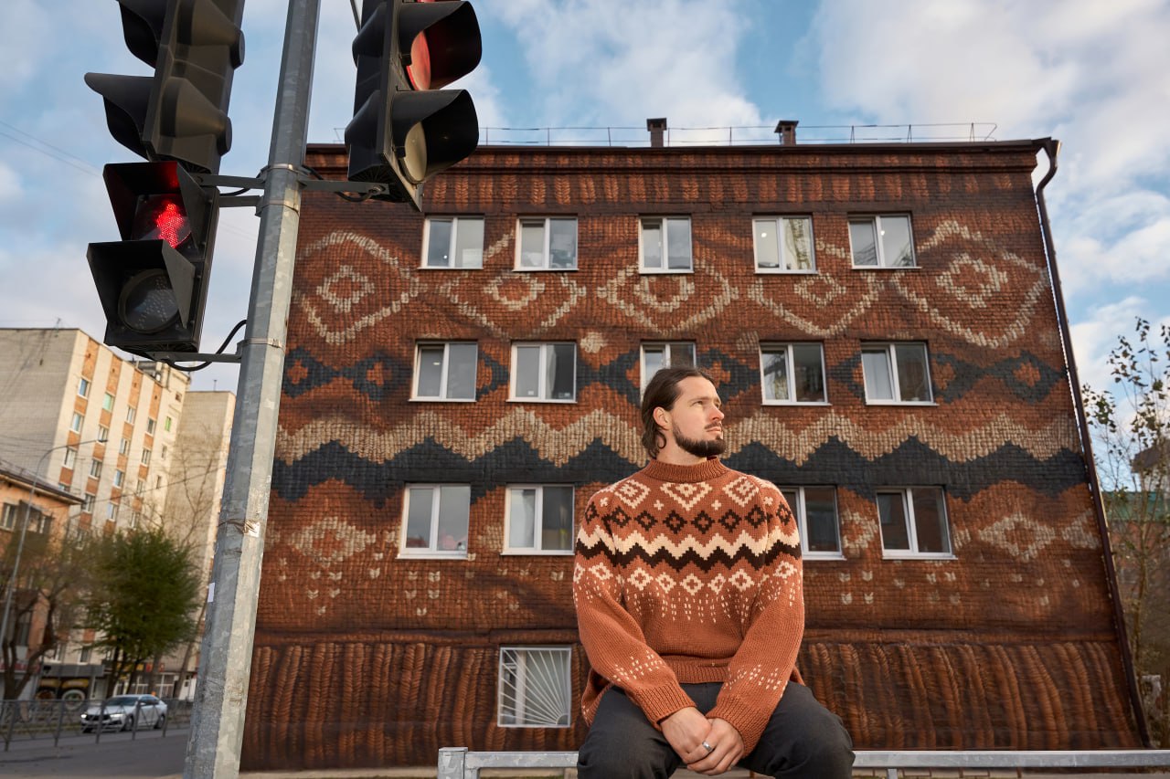 «Вязаный» мурал со скандинавским узором появился напротив кварталов «На Минской» на фасаде дома 8а по улице Котовского.