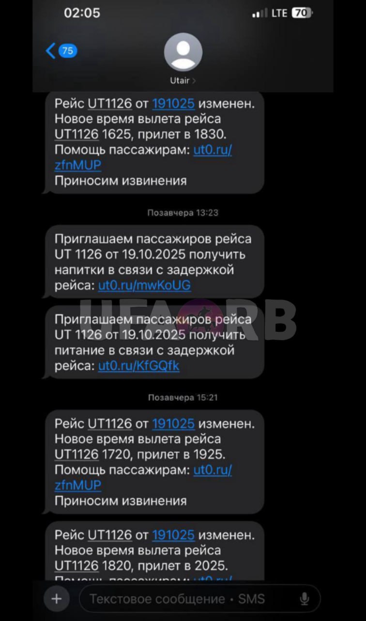 Пассажиры рейса Utair № 1126 (Уфа-Тюмень) рассказали, что должны были вылететь ещё 19 октября, однако на борту произошла поломка, за ними прислали запасной борт, но в салоне неожиданно погас свет, рейс отложили, а клиентов отправили в гостиницу, третий лайнер не смог вылететь из-за тумана.