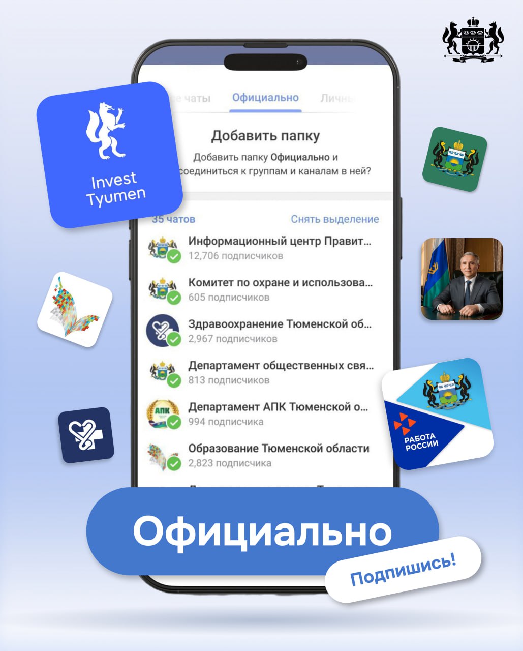Папка «Тюменская область» — тут. Будьте в курсе событий и узнавайте информацию из первых рук.