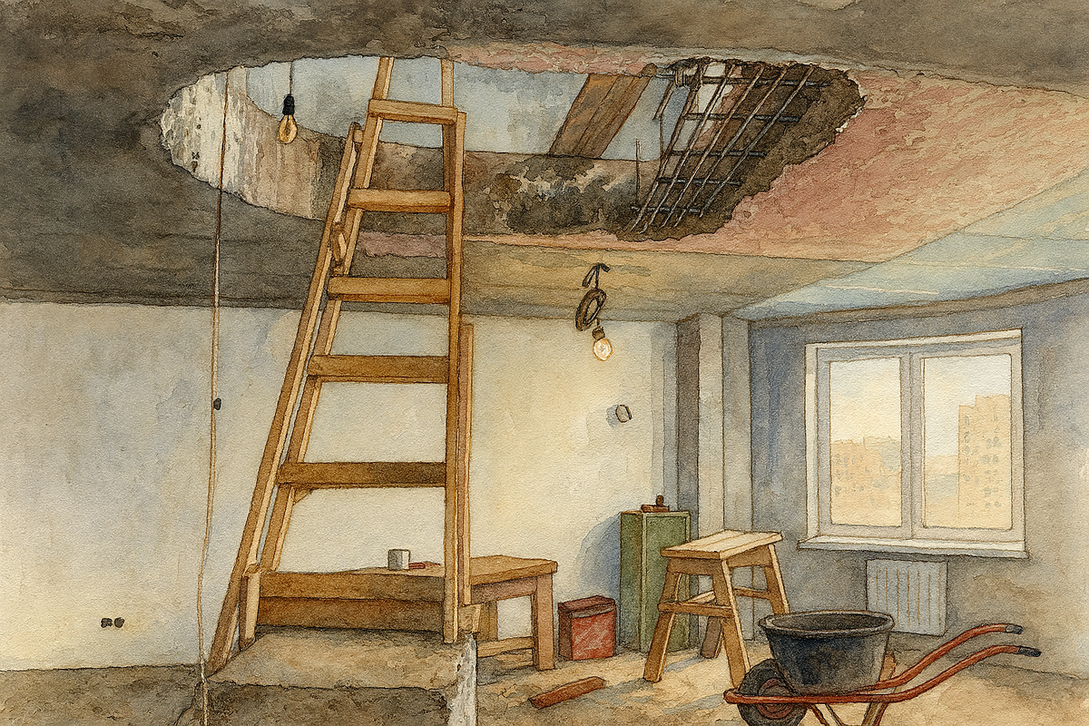 Гражданка Б., проживающая на последнем этаже одного из 25-этажных зданий столицы, решила, что ей недостаточно пространства. Над ее квартирой находился технический этаж, частично используемый для коммуникаций и офисных помещений. В какой-то момент она арендовала одно из таких помещений и приняла решение кардинально изменить свою жилплощадь.