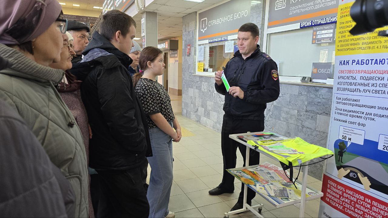 Инспекторы Госавтоинспекции совместно с работниками автовокзала провели экспресс-уроки и мастер-классы. Рассказали пассажирам про светоотражающие элементы. Показали как их нанести на одежду, чтобы быть заметными в тёмное время суток. Мероприятие направлено на уменьшение дорожных аварий с участием пешеходов.