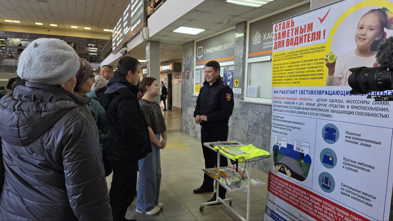 "Засветись!". Профилактическая акция в рамках Единого дня безопасности состоялось на тюменском автовокзале.