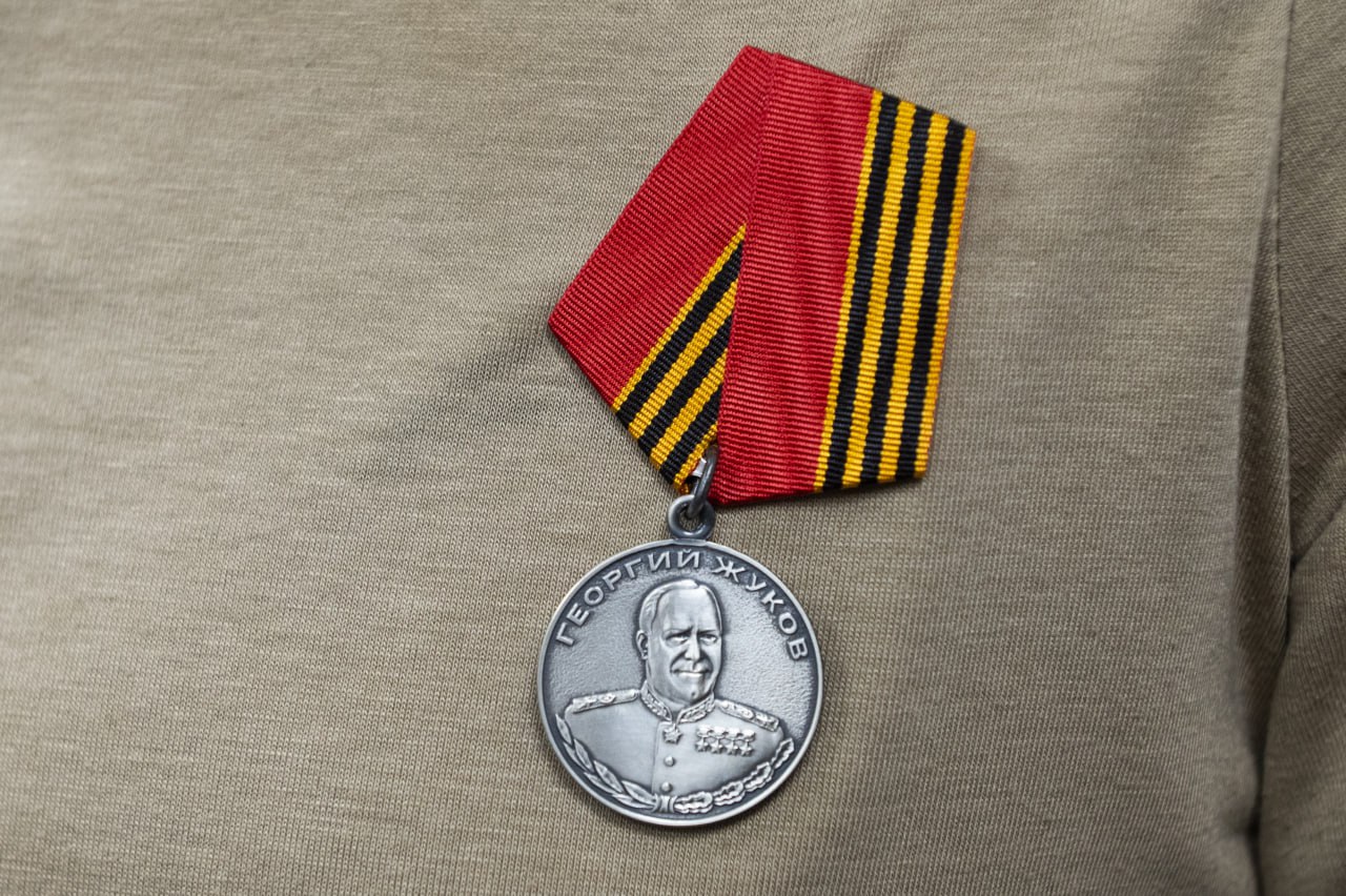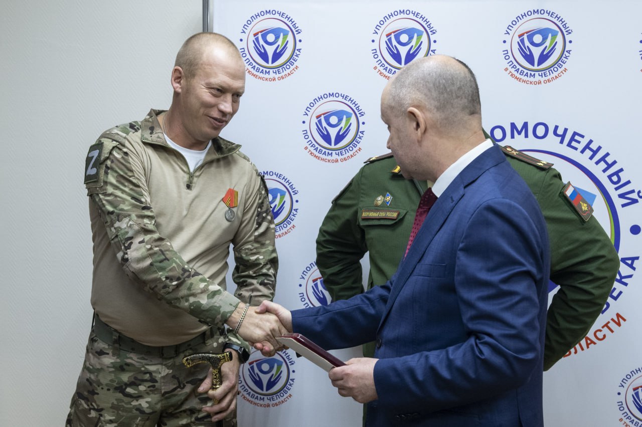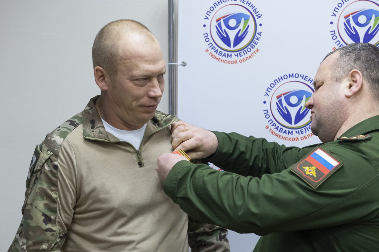 Сегодня Уполномоченный по правам человека в Тюменской области Олег Датских и заместитель военного комиссара Тюменской области Алексей Неверов вручили ему медаль Жукова.