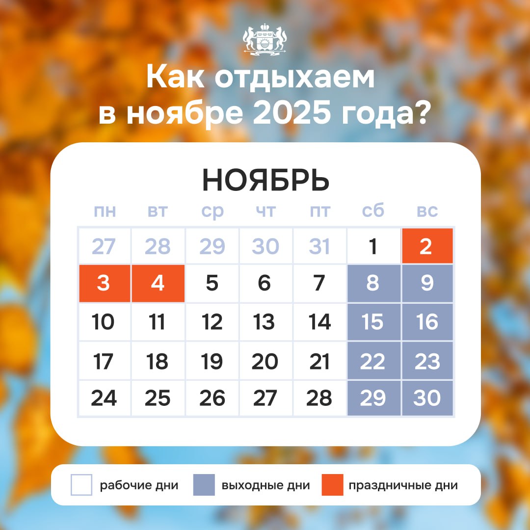 Потом будет еще три дня выходных на День народного единства с 2 по 4 ноября. Всего в ноябре нас ждет 11 выходных и 19 рабочих дней.
