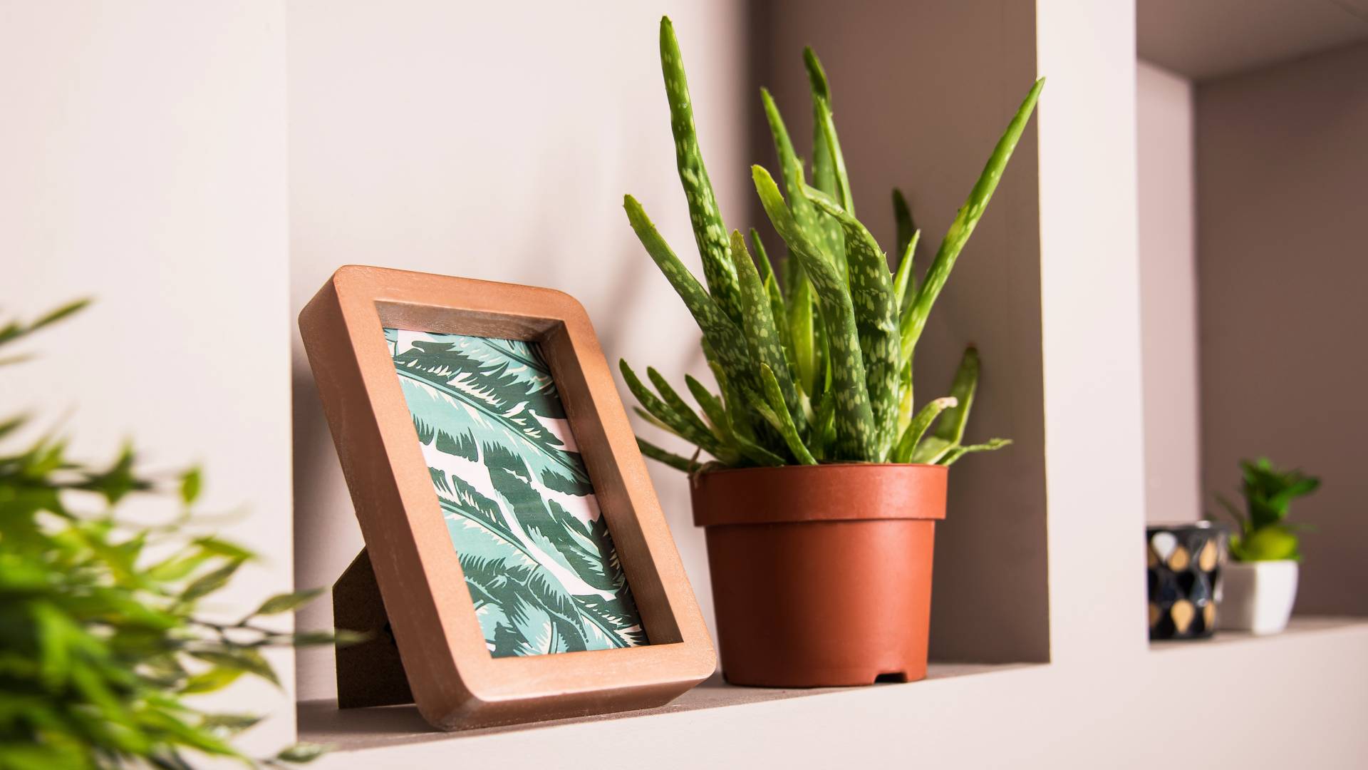 Объединяйте предметы схожей тематики или цвета в группы по три штуки. Остальное пространство заполняйте книгами, журналами или оставляйте пустым. На полке большого размера старайтесь разместить нечетное количество вещей.