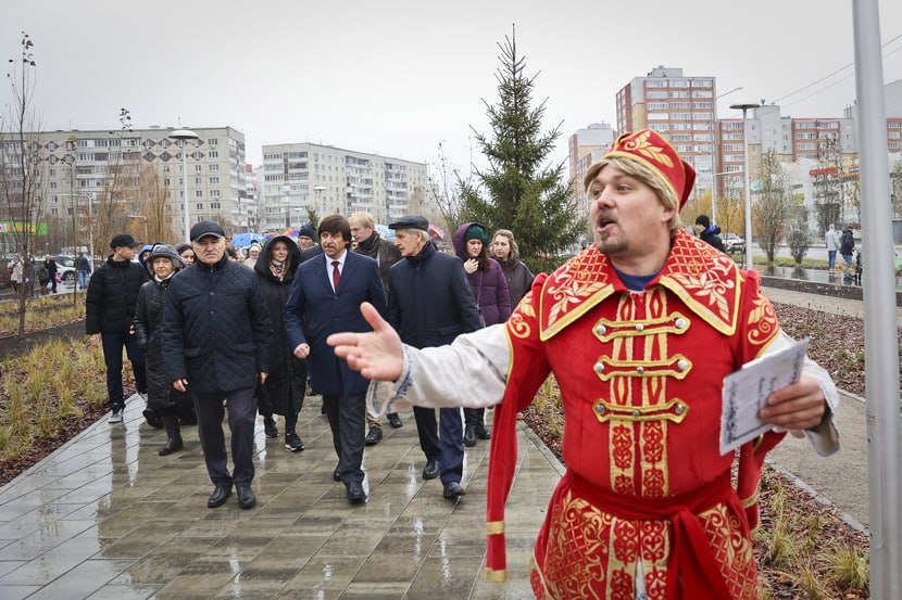 Дорожки, ландшафтный дизайн, лавочки, объекты малой архитектурной формы и, конечно же, игровые площадки и различные аттракционы для детей. Всю эту красоту наблюдают местные жители из своих окон вместо заросшего буйной зеленью пустыря, который находился здесь много лет. А самое главное — сюда со страниц книги сошли персонажи самого известного произведения сибирского сказочника «Конёк-Горбунок».
