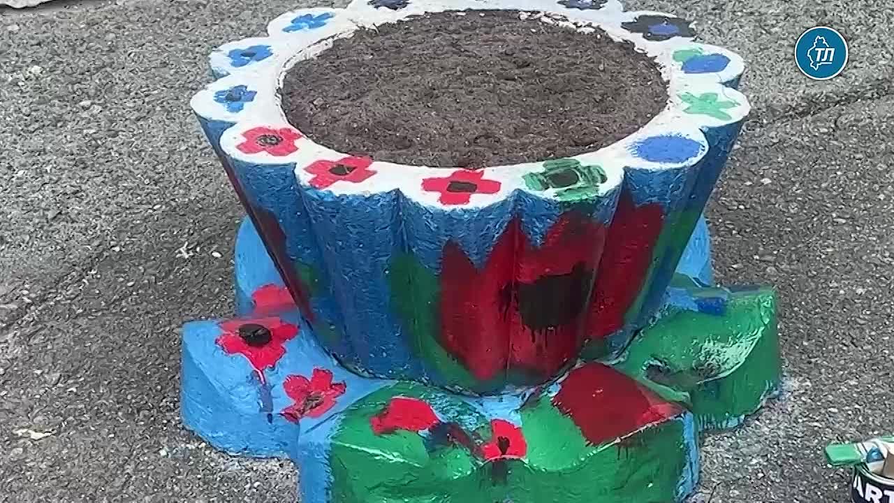 На мурале есть две части: современность с микросхемами и наше прошлое с тюменским ковром. На нем изображены маки, которые активно цветут в Краснодоне.