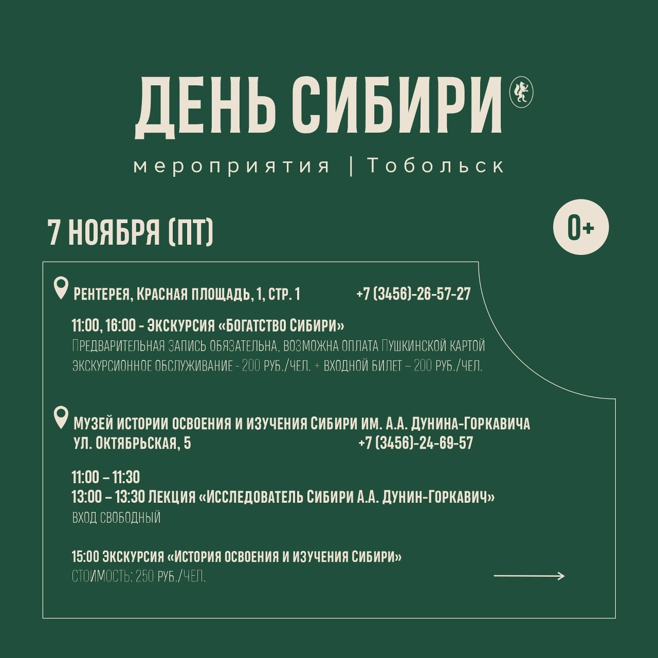 На Базарной площади вас ждут веселые народные гулянья, вкусные угощения и мастер-классы по ремеслам. Также будут игры и яркие выступления. Здесь вы сможете почувствовать настоящий дух сибирской культуры.Празднование пройдет с 7...