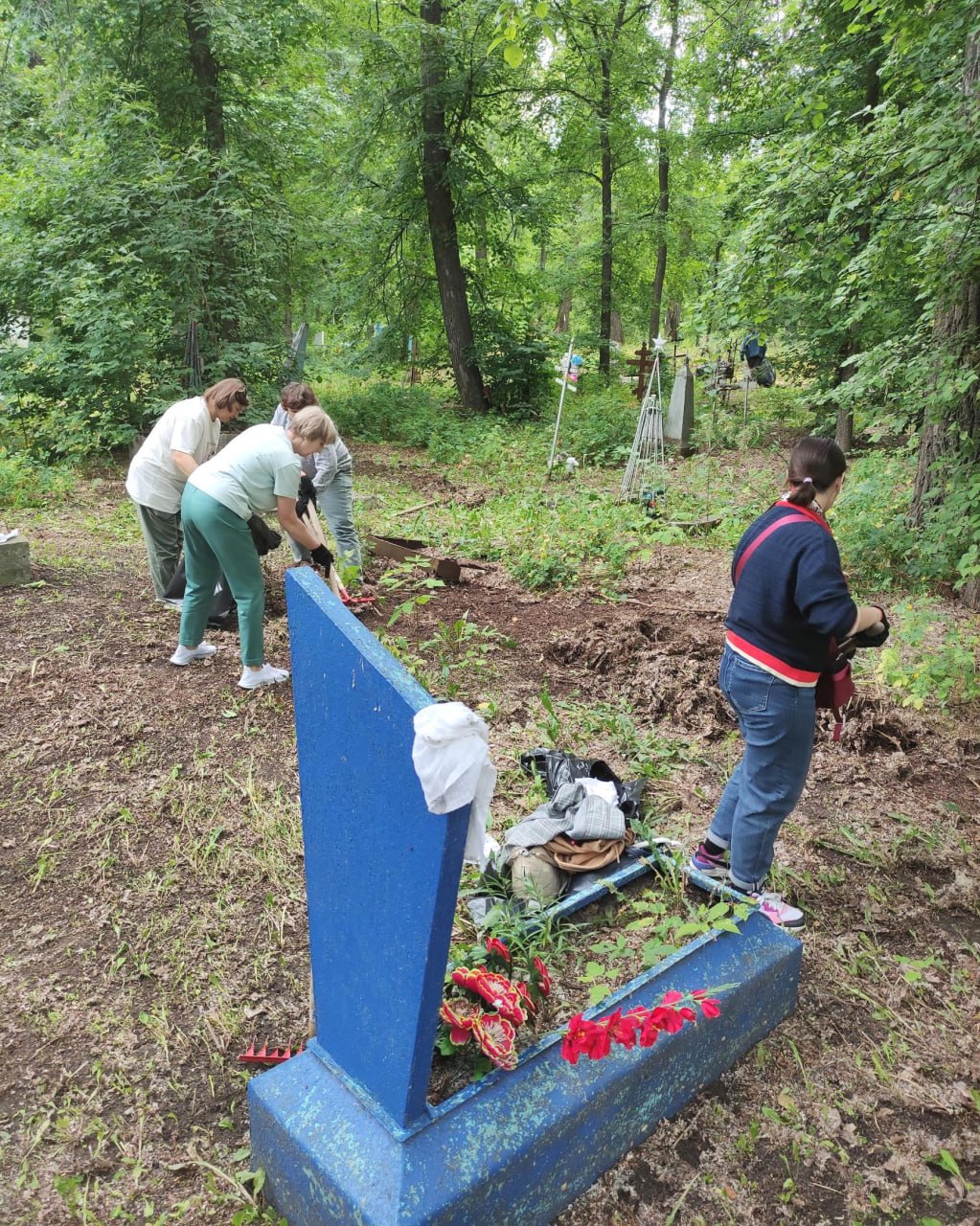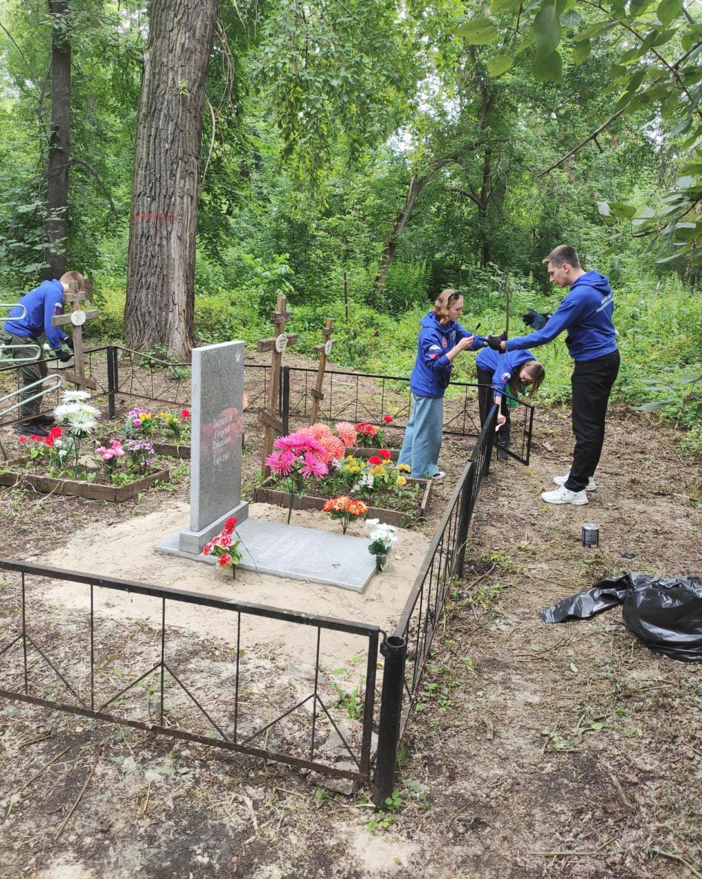 Собрано около 66 кубометров мусора, листвы и веток, наведен порядок на 37 захоронениях участников Великой Отечественной войны, а также покрашены 8 оградок на указанных захоронениях. Вдоль ограждения кладбища со стороны ул. Республики произведена посадка 51 ели.