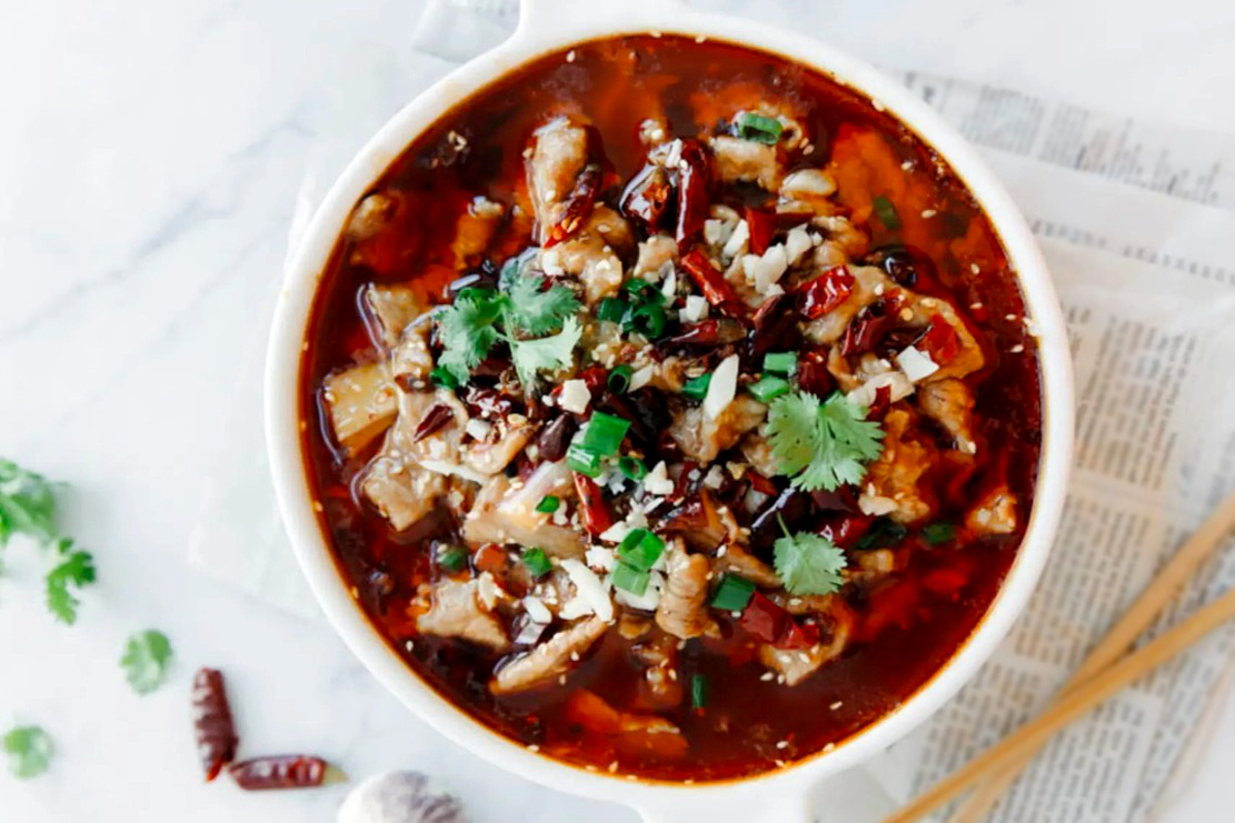 Шуй Чжу переводится как «вареное в воде», но не дайте себя обмануть этим скромным названием. На самом деле это одно из знаковых блюд региона. Здесь вода обретает силу — она наполняется специями, острыми чили и ферментированной пастой доубаньцзян, создавая насыщенный и запоминающийся вкус.