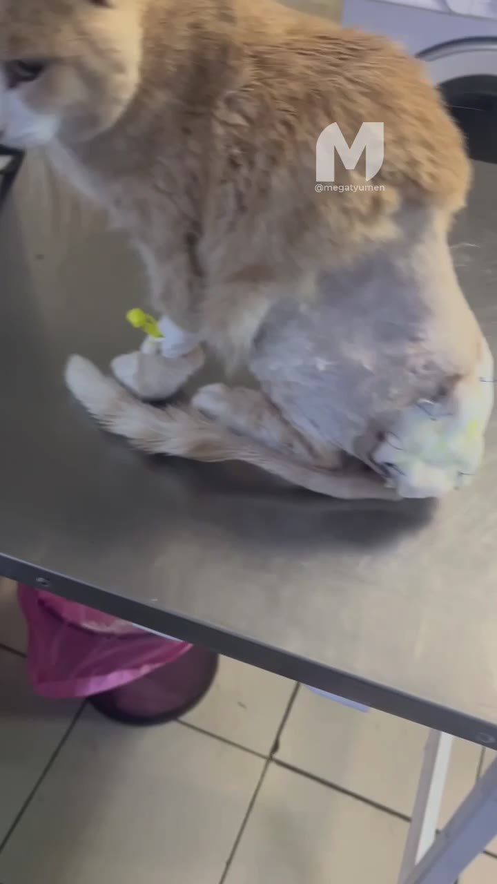 Тюменский кот Рыжик, у которого из-за петарды все раздроблено под хвостом, чувствует себя лучше