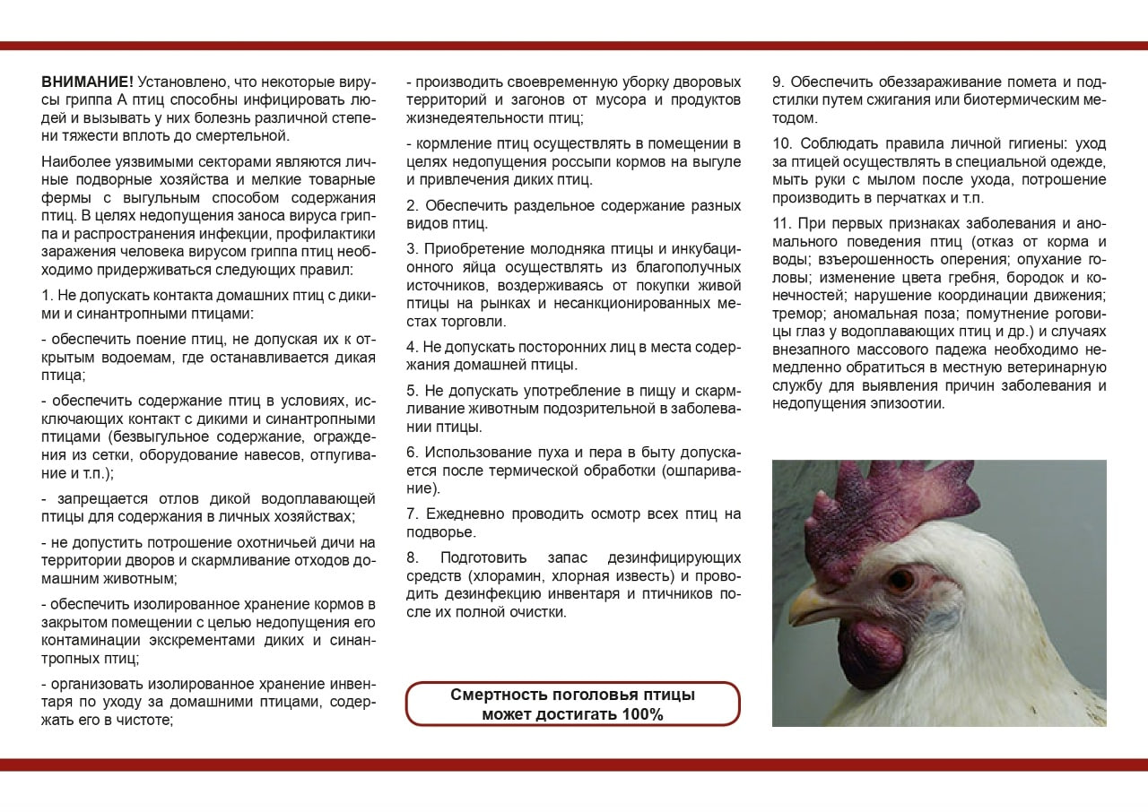 Птичий грипп — серьезная угроза! Призываем всех владельцев домашней птицы ознакомиться с важной памяткой