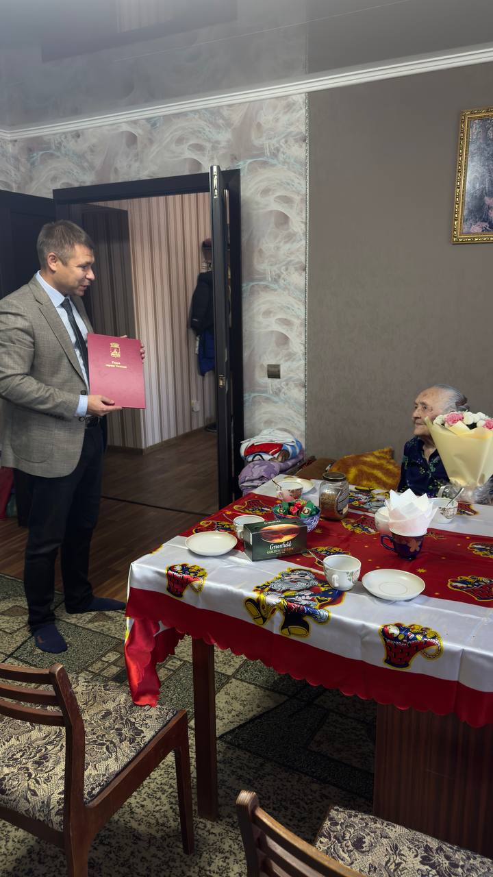 Александр Константинович тепло поздравил Анну Петровну, подчеркнув, что её жизненный путь - это пример стойкости, трудолюбия и любви к Родине. Поблагодарив за внимание и заботу, юбиляр поделилась своим секретом долголетия. Как писал в лирическом стихотворении Роберт Рождественский, «всё начинается с любви»: с любви к родине, к родным, близким. А еще - с доброты и позитивного настроя.