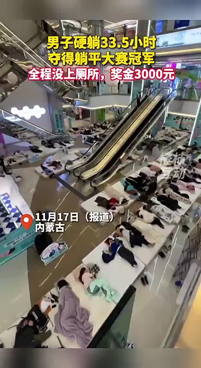Победитель пролежал 33,5 часа и получил приз в 3 тысячи юаней (34 тысячи рублей). Предвидя трудности, он надел подгузник, чтобы не нарушать правила.