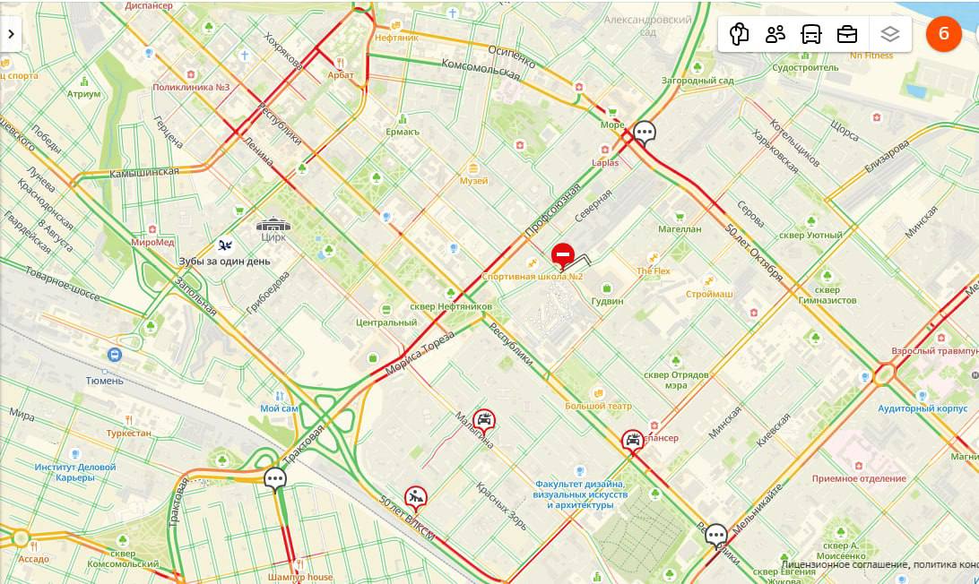 Затор также на перекрестках Республики – Холодильная и 50 лет Октября – Профсоюзная.