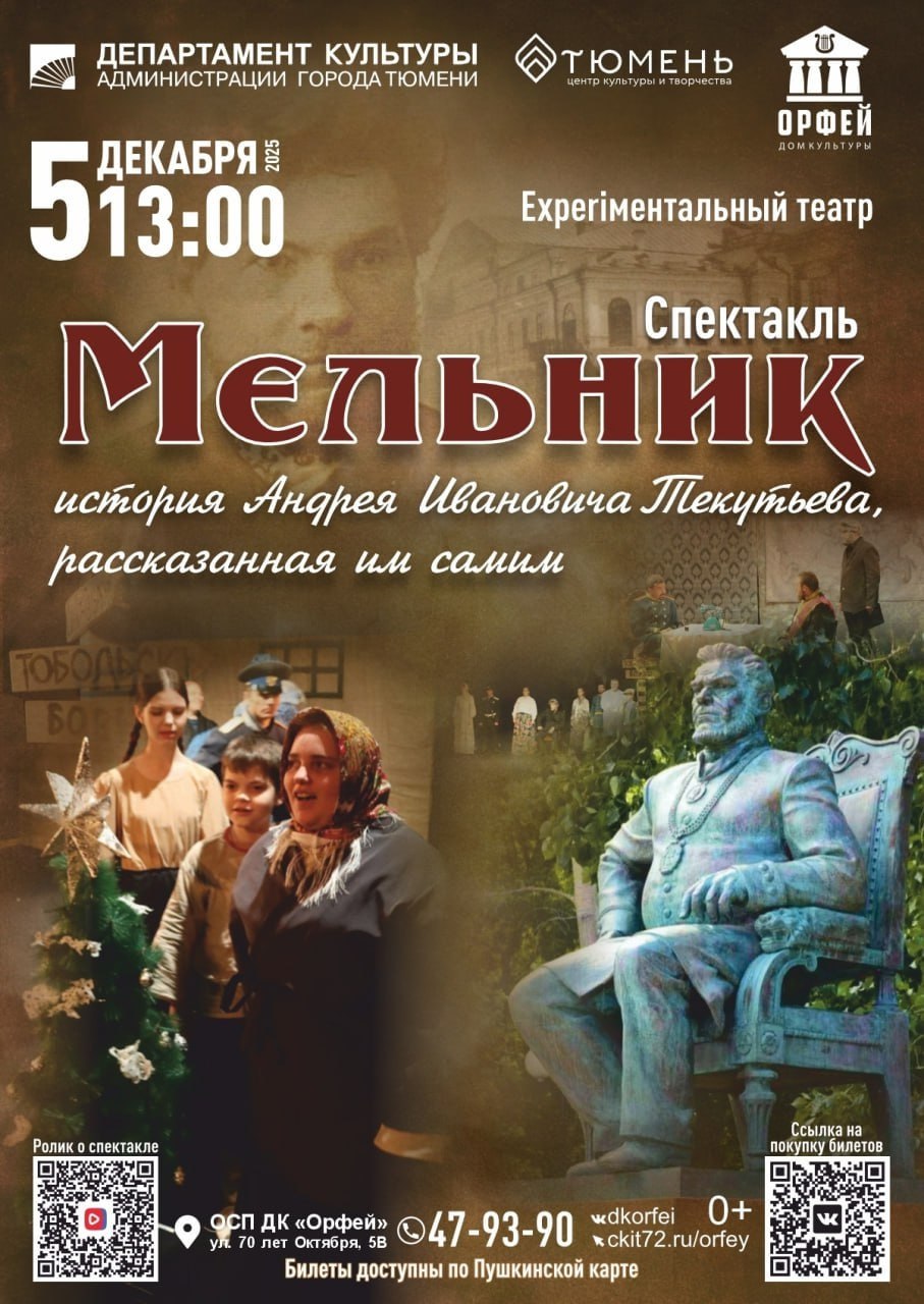 ДК "Орфей" дал второй день для показа спектакля "Мельник. История Андрея Ивановича Текутьева, рассказанная им самим".