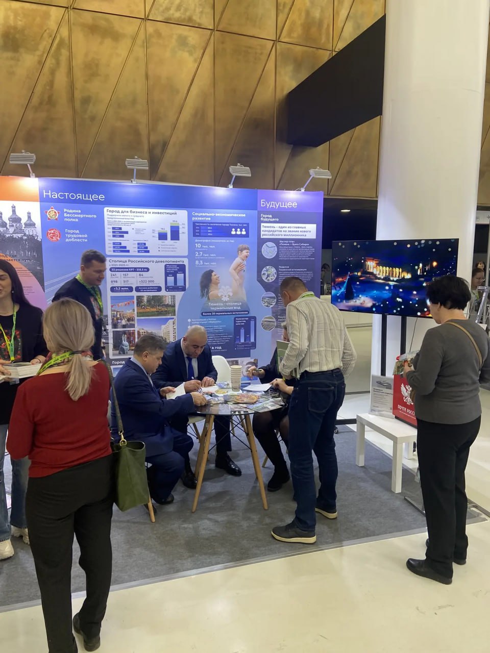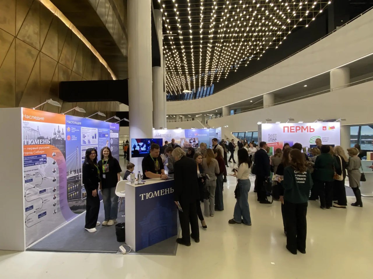 На форуме организована экспозиция, демонстрирующая историческое наследие Тюмени, современный облик города и значимые достижения.