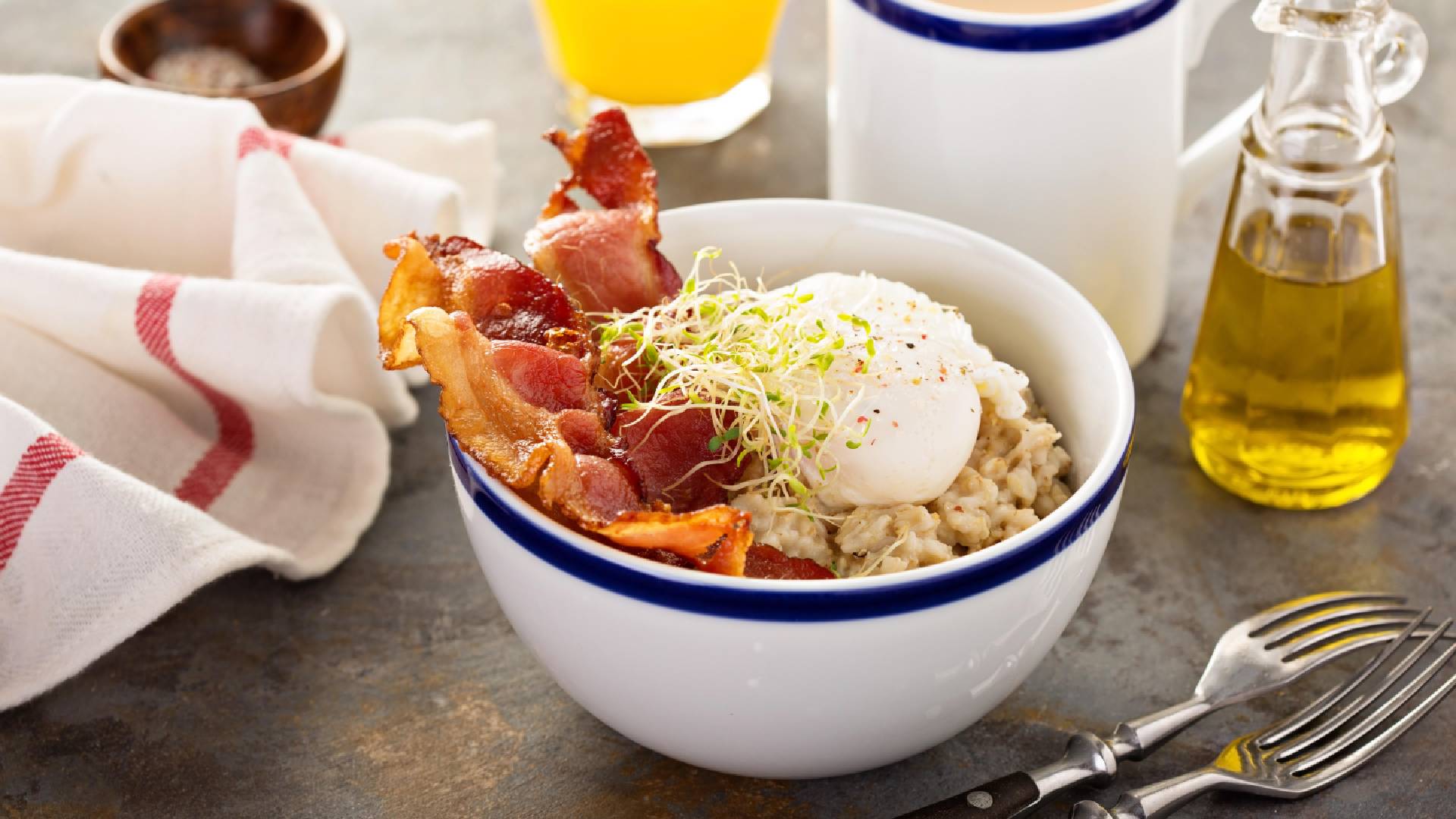 Овсяную кашу все привыкли есть с молоком на завтрак. Но есть немало других вариантов приготовления этой вкуснейшей крупы. Любители кулинарных экспериментов обязательно должны попробовать овсяную кашу с беконом и сыром.