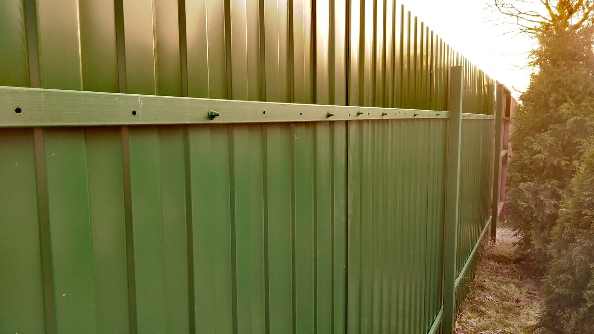 Профлист хорошо реагирует на различные погодные условия, не требует регулярной покраски и легко переносит нагрузки. Но стоит учесть, что парусность этого материала требует надежных опор: столбы необходимо заглублять минимум на метр, чтобы избежать перекосов забора в сильный ветер.