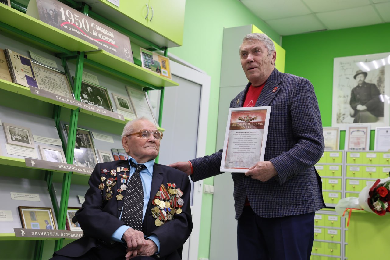 Сотрудники городской библиотеки № 8 им. А.П. Чехова, которые тесно общаются с юбиляром, сегодня организовали трогательную встречу с его друзьями, где звучали слова поздравления и из рук в руки передавались фотографии, сделанные в последние годы.