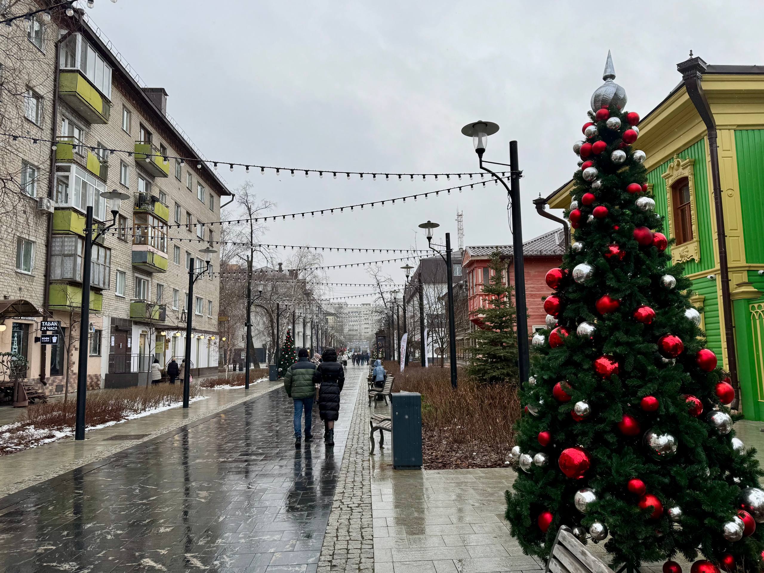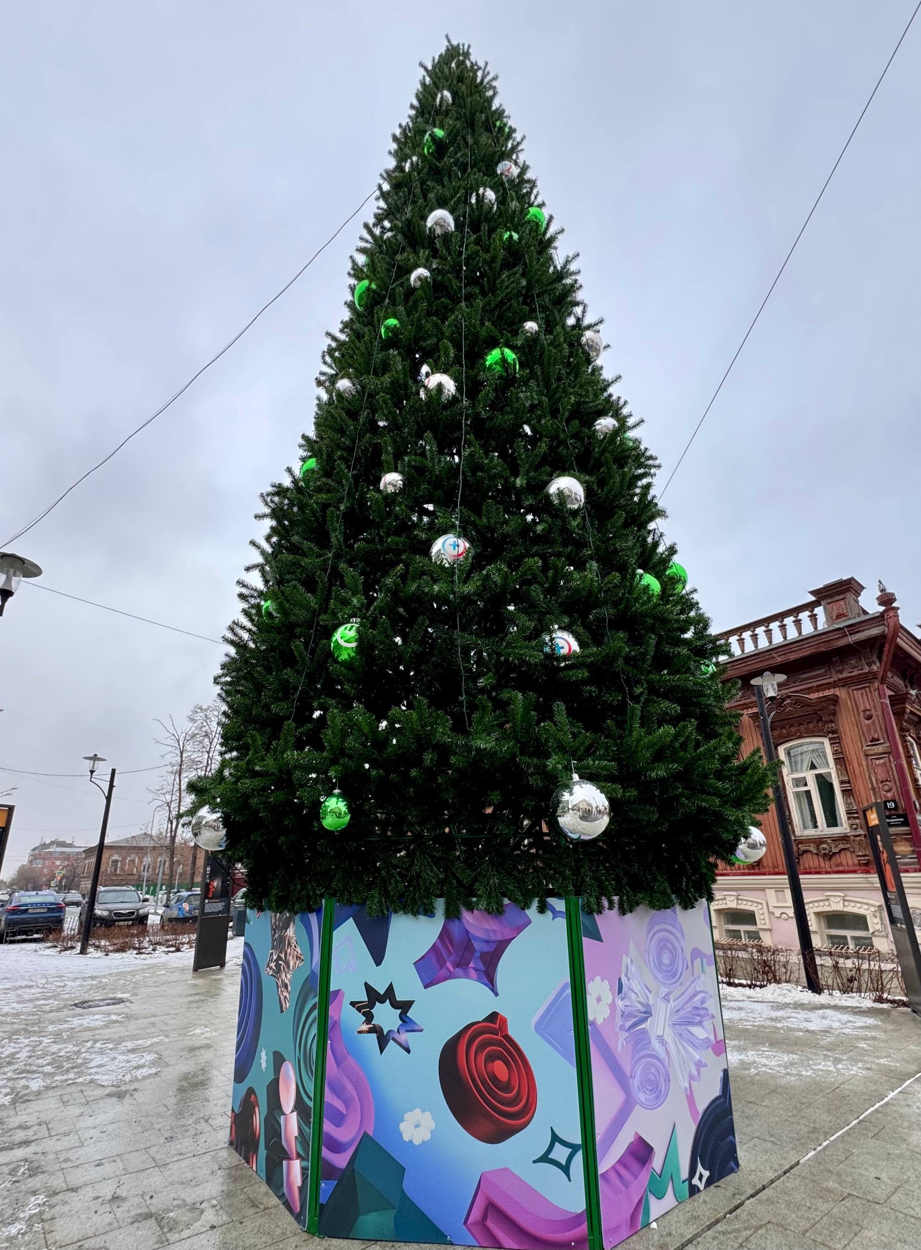 На пешеходной улице Дзержинского "выросли" ёлочки И сразу - с новогодними шарами!