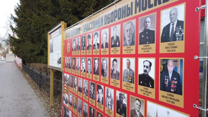 В Тюмени возле здания на ул. Республики, 51 установили баннер, посвященный тюменцам-участникам обороны Москвы