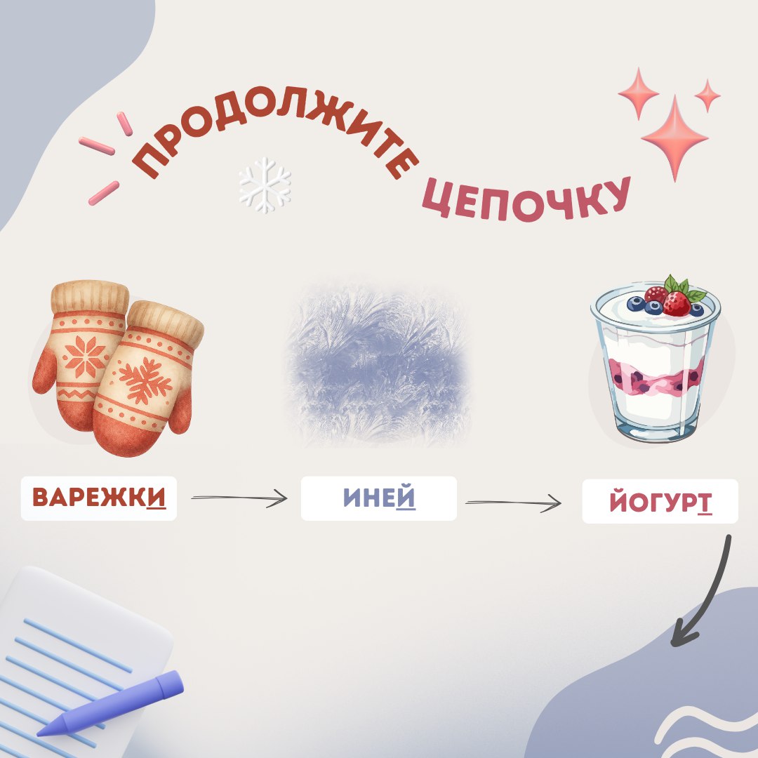 Правила простые: берём последнюю букву предыдущего слова и придумываем своё.